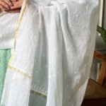 Silhouette:Â This exquisite White Chanderi Lucknowi Chikankari Dupatta is a timeless piece that combines the elegance of traditional craftsmanship with modern refinement. The delicate embroidery techniques of Bakhiya, Phanda, and Ghaspatti are beautifully executed using soft cotton threads in hues of White, adding a subtle yet vibrant touch to the fabric. The piece is further enhanced with intricate Muqaish work, adding a shimmering charm to the design. The Chanderi fabric offers a light, breathable feel, making this dupatta perfect for both casual and festive occasions. Whether draped over a salwar kameez or paired with a simple outfit, this dupatta is sure to add an air of sophistication and grace.