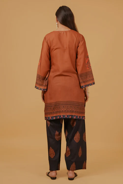 Cocoa Brown Printed Lawn Cotton Co-ord Set