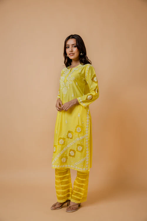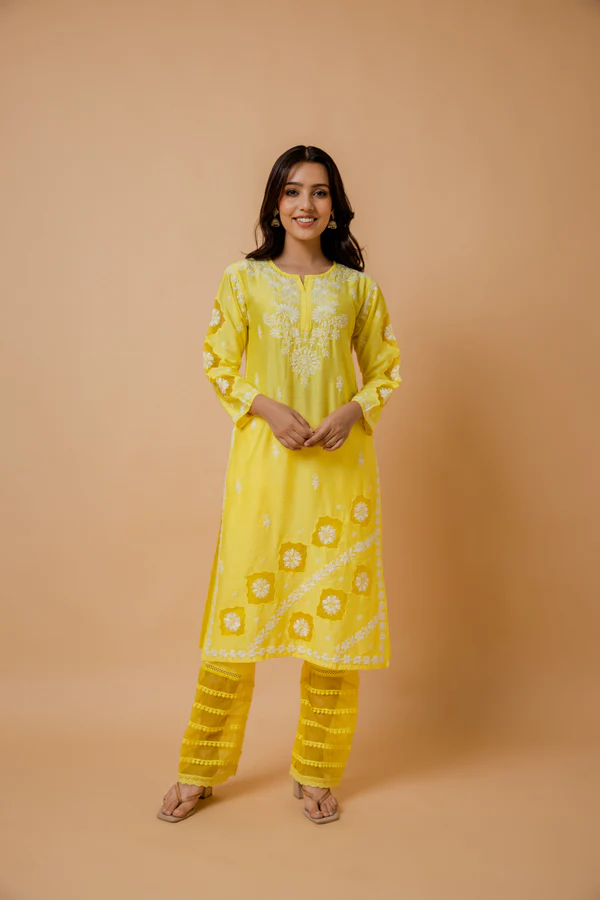 The intricate chikankari embroidery adorns the kurta, showcasing impeccable craftsmanship and adding an elegant touch to your ensemble. The soothing shade of blue complements a wide range of skin tones, making it a versatile choice for various occasions.