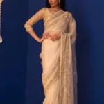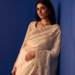 Featuring White Organza Saree is adorned with exquisite Chikankari and Zardozi work. The intricate detailing adds a touch of grace and opulence, making this saree a perfect choice for those who appreciate a blend of traditional contemporary elegance.