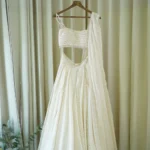 Our 24-kalidar lehenga with its classic white hues features expert Zari, Mirror and Pearl work. The Chikankari pattern on the regal silhouette nods to tradition and craftsmanship.Paired with the lightest & softest Organza Dupatta- the sheen & shimmer embellishments echo the lehenga and blouse, pulling the whole look together.