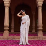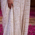 Exclusive beige georgette Chikankari saree with intricate all-over Resham thread embroidery is an elegant and timeless piece. The lightweight georgette fabric provides a soft, flowing drape, while the Chikankari, a traditional Lucknowi embroidery technique, adds a delicate texture. The Resham thread work, known for its sheen and smoothness, enhances the intricate floral and paisley patterns often associated with Chikankari. This saree is perfect for occasions that call for a blend of sophistication and tradition, offering both subtlety and grace.